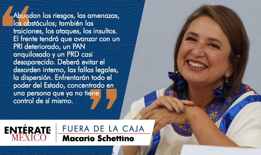 Abundan los riesgos, las amenazas, los obstáculos; también las traiciones, los ataques, los insultos. El frente tendrá que avanzar con un PRI deteriorado, un PAN anquilosado y un PRD casi desaparecido. Deberá evitar el desorden interno, las fallas legales, la dispersión. Enfrentarán todo el poder del Estado, concentrado en una persona que ya no tiene control de sí mismo.