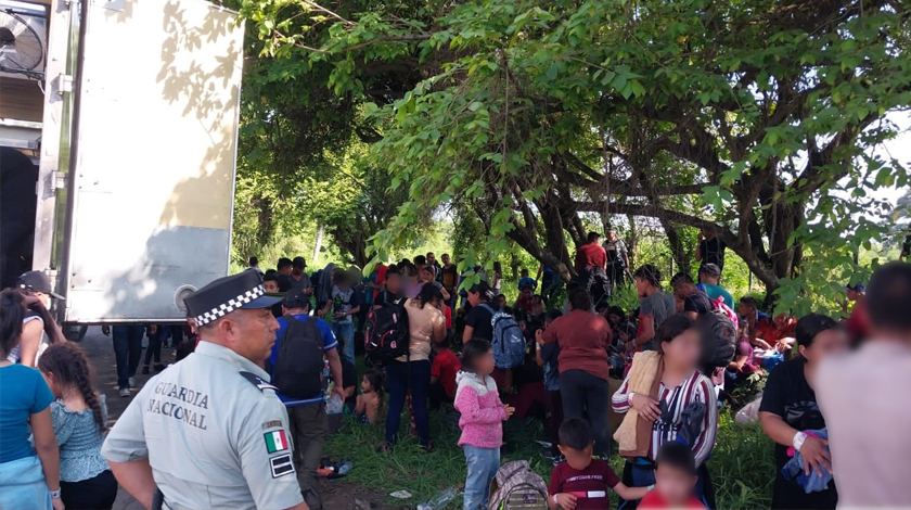 Autoridades rescataron en Veracruz a un grupo de 148 migrantes que había sido abandonado al interior de la caja de un tráiler.