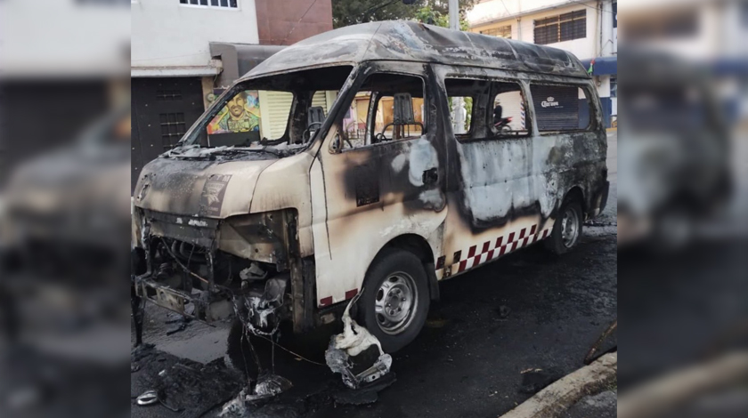 Una camioneta del transporte público del Estado de México fue quemada por presuntos extorsionadores.