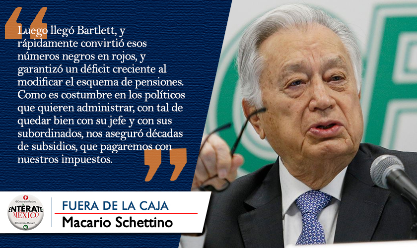 Luego llegó Bartlett, y rápidamente convirtió esos números negros en rojos, y garantizó un déficit creciente al modificar el esquema de pensiones. Como es costumbre en los políticos que quieren administrar, con tal de quedar bien con su jefe y con sus subordinados, nos aseguró décadas de subsidios, que pagaremos con nuestros impuestos. Estuvo presionando por regresar el monopolio de la electricidad a la comisión, pero eso es literalmente imposible, de forma que lo que logró fue impedir el crecimiento del servicio privado, y asegurar más de la mitad del mercado para la CFE. Me refiero a generación, porque las otras dos actividades (transmisión y distribución) sí son monopolio, y con cierta razón.