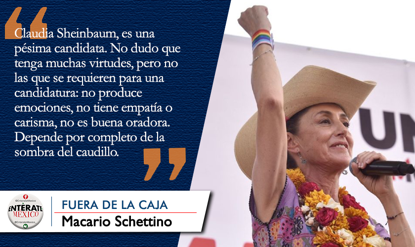 Este empate, sin embargo, desaparece cuando uno considera las dos potenciales candidatas presidenciales. De un lado, Claudia Sheinbaum, es una pésima candidata. No dudo que tenga muchas virtudes, pero no las que se requieren para una candidatura: no produce emociones, no tiene empatía o carisma, no es buena oradora. Depende por completo de la sombra del caudillo. Éste, que ha tenido mejores momentos, ahora apenas logra mantener la aprobación de sus antecesores en el mismo momento del sexenio. Salvo alguna encuestadora que lo pone 10 o 15 puntos por encima de las demás, sufre el Presidente para llegar a 60 por ciento de aprobación. Nada excepcional.