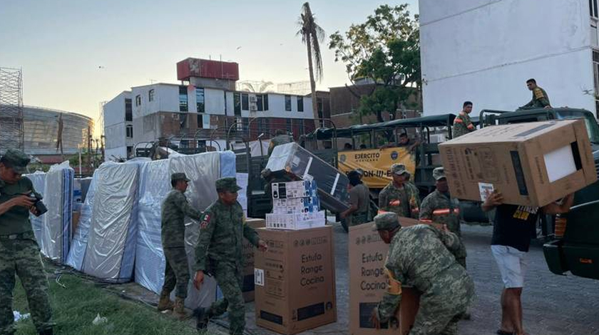 Personal de la Secretaría de la Defensa Nacional y la Secretaría de Bienestar participaron en la entrega de enseres que se realizó frente a la iglesia de La Poza este martes, donde según residentes de colonias, como Las Delicias, no recibieron ninguna notificación oficial sobre la entrega, sino que entre vecinos se avisaron.