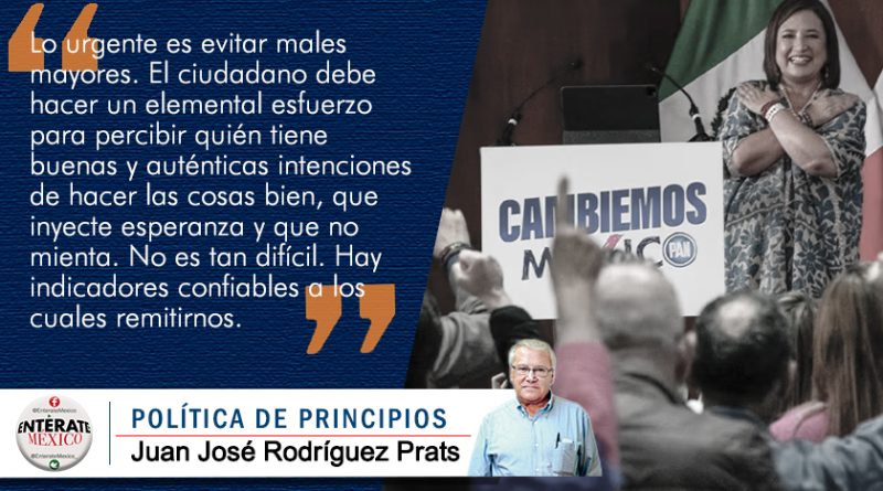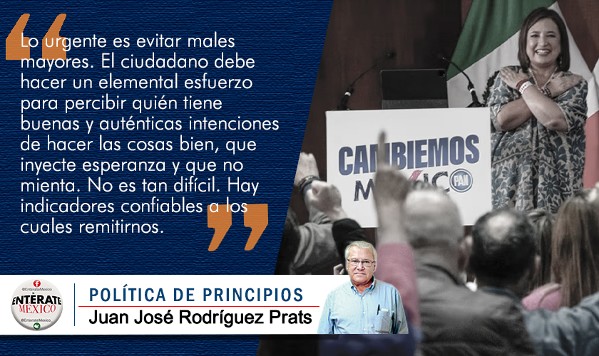 El Estado mexicano se está desmoronando. Vamos a elegir hombres y mujeres que conduzcan al pueblo de México en una difícil circunstancia mundial y nacional. Lo urgente es evitar males mayores. El ciudadano debe hacer un elemental esfuerzo para percibir quién tiene buenas y auténticas intenciones de hacer las cosas bien, que inyecte esperanza y que no mienta. No es tan difícil. Hay indicadores confiables a los cuales remitirnos.