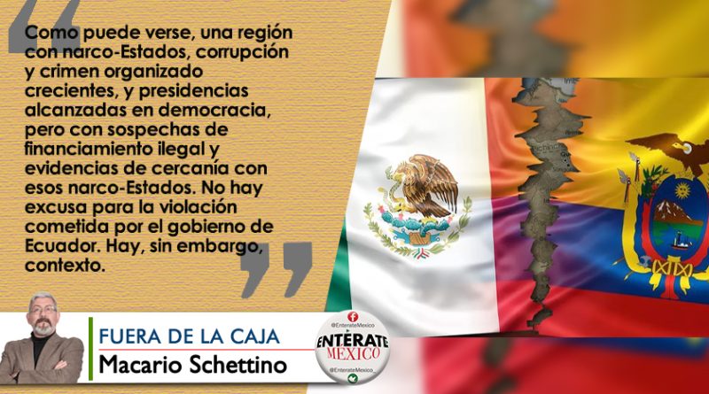 Como puede verse, una región con narco-Estados, corrupción y crimen organizado crecientes, y presidencias alcanzadas en democracia, pero con sospechas de financiamiento ilegal y evidencias de cercanía con esos narco-Estados. No hay excusa para la violación cometida por el gobierno de Ecuador. Hay, sin embargo, contexto.