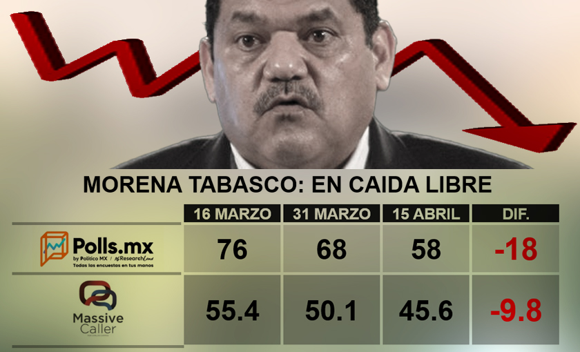 La agencia Polls.Mx publicó su análisis en torno a los sondeos de opinión que realizan diversas empresas a propósito de la elección de gobernador de Tabasco, y confirma lo que otras empresas como Massive Caller han venido advirtiendo: que el candidato de Morena, Javier May, ha estado perdiendo simpatías electorales conforme avanza la campaña.