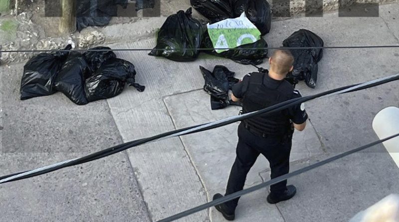 Junto a las bolsas fue dejado un mensaje de advertencia, supuestamente firmado por un grupo criminal.
