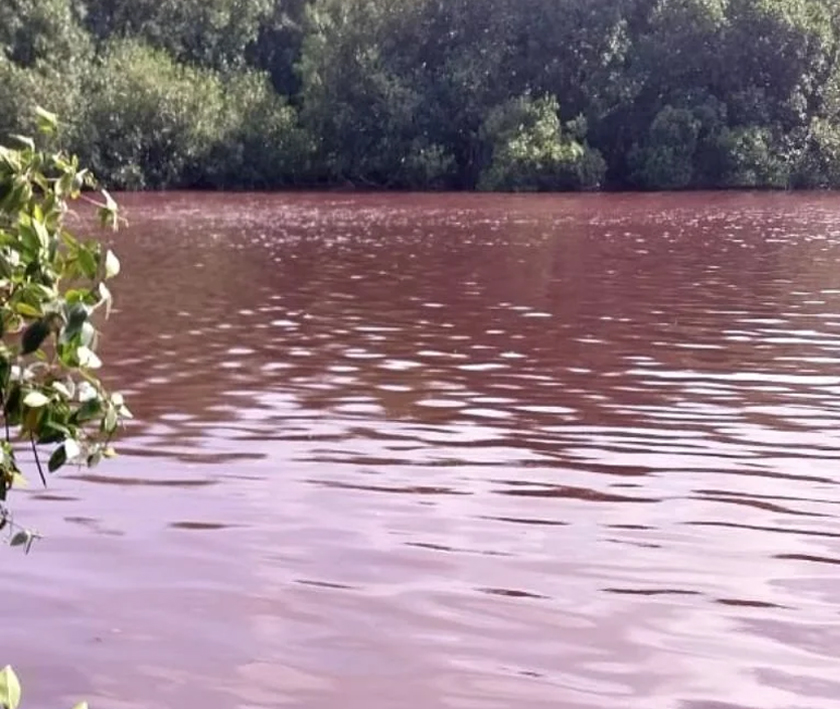 En vísperas del «arranque de la producción», denuncian pescadores contaminación en laguna cercana a la refinería de Dos Bocas; las aguas se tornaron rojas y huele a combustible
