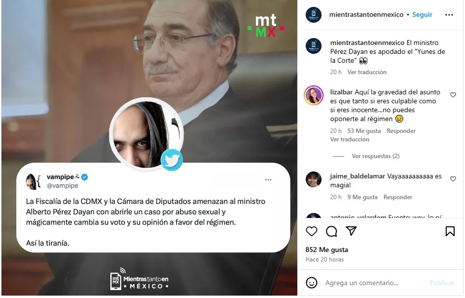 Asimismo, en redes sociales corrió el rumor de que hay acusaciones de abuso sexual en contra del ministro y que esa fue la razón por la que se “dobló” ante la 4T. El periodista Carlos Loret de Mola lo apodó “El Yunes de la Corte” y diversos analistas retomaron el mote.