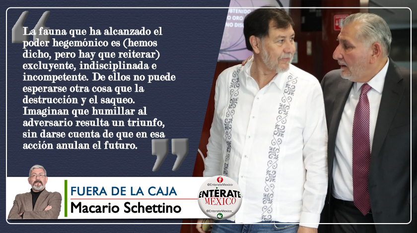 La fauna que ha alcanzado el poder hegemónico es (hemos dicho, pero hay que reiterar) excluyente, indisciplinada e incompetente. De ellos no puede esperarse otra cosa que la destrucción y el saqueo. Imaginan que humillar al adversario resulta un triunfo, sin darse cuenta de que en esa acción anulan el futuro. Creen que basta ocultar la información para que nadie perciba el botín que acumulan. No tienen la sabiduría de antaño: de robar, pero salpicar; de cuidar límites para evitar sorpresas; de construir el Estado al mismo tiempo que el patrimonio propio. Una punta de rufianes, pues.