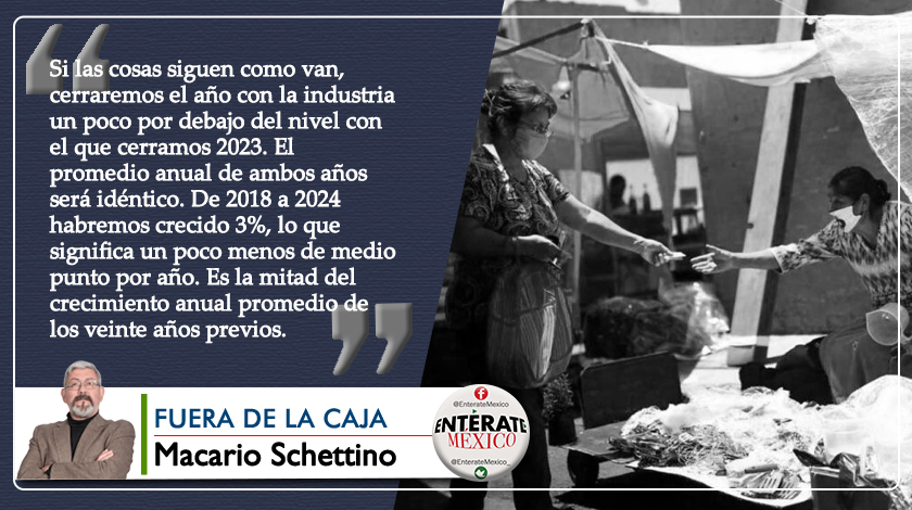 Si las cosas siguen como van, cerraremos el año con la industria un poco por debajo del nivel con el que cerramos 2023. El promedio anual de ambos años será idéntico. De 2018 a 2024 habremos crecido 3%, lo que significa un poco menos de medio punto por año. Es la mitad del crecimiento anual promedio de los veinte años previos.
