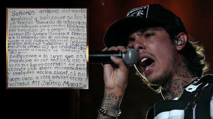 La Fiscalía de Sonora emitió órdenes de protección para los cantantes Natanael Cano, Tito Torbellino y Javier Rosas, luego de que apareció una manta con amenazas en un plantel escolar de educación media superior al sur de Hermosillo.