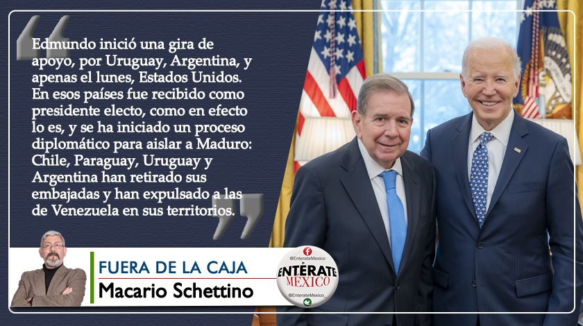 En el inicio del año, Edmundo inició una gira de apoyo, por Uruguay, Argentina, y apenas el lunes, Estados Unidos. En esos países fue recibido como presidente electo, como en efecto lo es, y se ha iniciado un proceso diplomático para aislar a Maduro: Chile, Paraguay, Uruguay y Argentina han retirado sus embajadas y han expulsado a las de Venezuela en sus territorios. Cancilleres de varios países, así como expresidentes, se darán cita en Panamá para acompañar a Edmundo González rumbo a su toma de posesión.