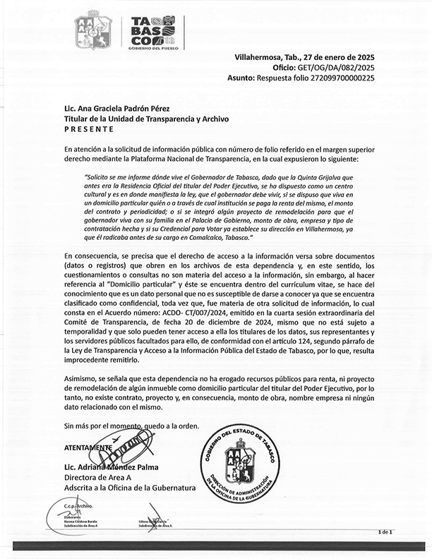 La desaparición de la Residencia Oficial del Gobernador de Tabasco, que hasta el día 5 de octubre de 2024 era la Quinta Grijalva, y la inseguridad, han hecho que el mandatario morenista Javier May se convierta en un gobernante nómada, sin domicilio fijo.