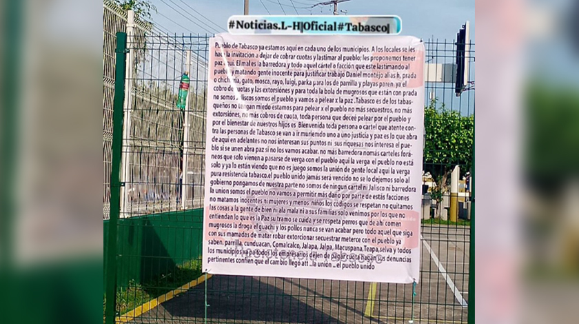 Aparecen mantas en Tabasco diciéndole a la delincuencia que pueden seguir trabajando pero que no se metan con inocentes; suena a arreglo mafioso: Lorena Beaurregard