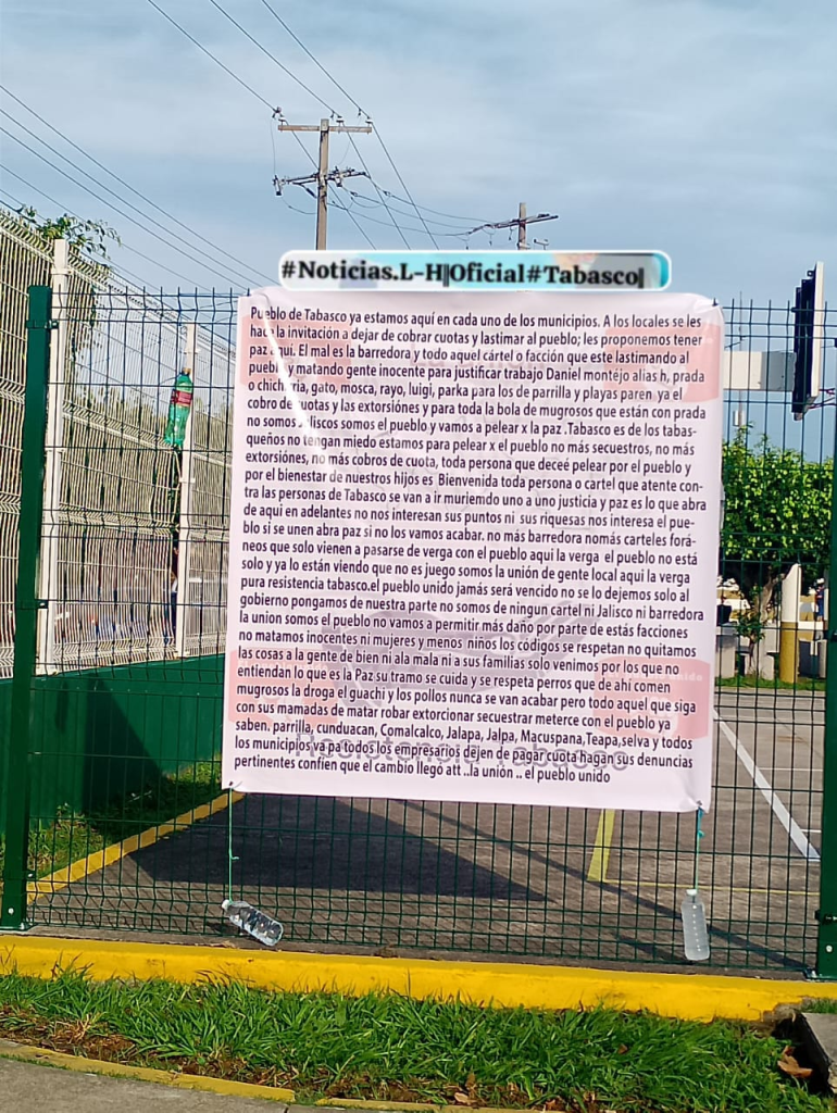 En una parte de las mantas, estos mensajes plantean que “no somos de ningún cartel (…) no vamos a permitir más daño”, para enseguida destacar: