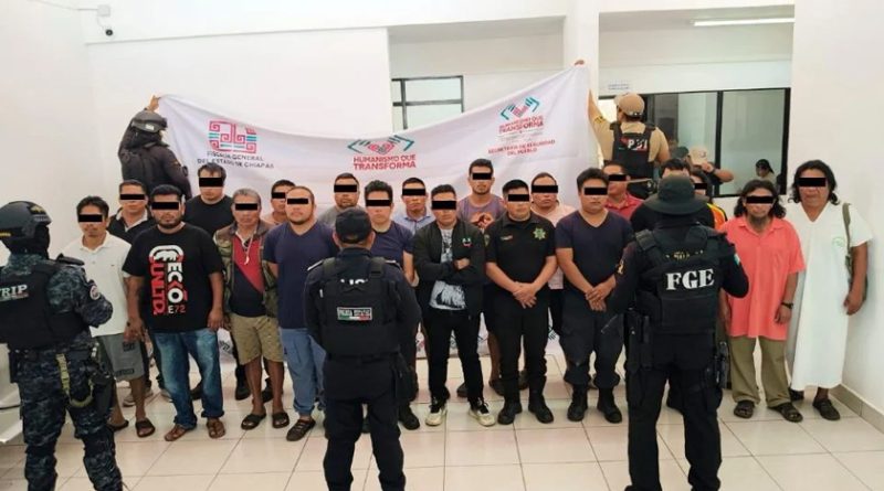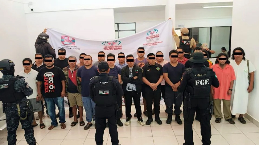 El fiscal Jorge Luis Llaven Abarca informó que 20 personas fueron detenidas en los municipios de Ocosingo y Palenque, algunas de ellas con órdenes de aprehensión relacionadas con un incidente ocurrido hace un año, cuando un grupo delictivo despojó a elementos de las Fuerzas Armadas de sus armas y uniformes, obligándolos a grabar videos pidiendo la devolución de droga incautada. Los detenidos son investigados por delitos como extorsión, robo de vehículos, homicidio y desaparición de personas.