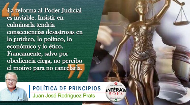 La reforma al Poder Judicial es inviable. Insistir en culminarla tendría consecuencias desastrosas en lo jurídico, lo político, lo económico y lo ético. Francamente, salvo por obediencia ciega, no percibo el motivo para no cancelarla. Lo que se ha venido haciendo me recuerda un libro de Rafael Ruiz Harrell, Exaltación de ineptitudes.