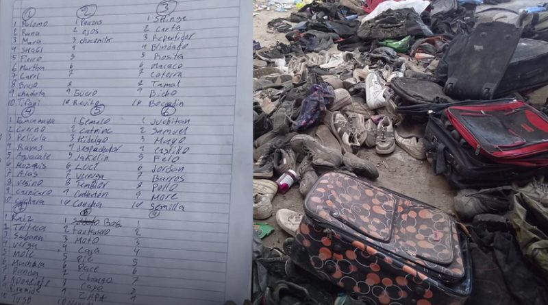También se localizaron maletas de viaje y mochilas de distintos tamaños, colores y marcas ―incluyendo una mochila repartidora―; artículos de aseo personal; prendas de vestir femeninas y masculinas; libretas; libros; llaveros; fotografías; medicamentos y carteras.