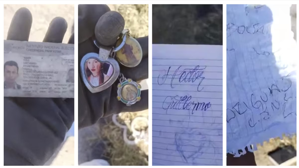 Algunos de los objetos hallados en el campo de adiestramiento de Teuchitlán.| Crédito: Colectivo Guerreros Buscadores de Jalisco