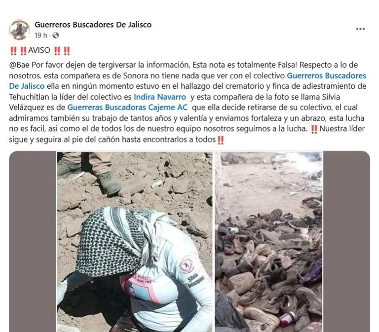 El crudo hallazgo incluso provocó que surgiera la noticia falsa de que una madre buscadora del colectivo había decidido retirarse de la lucha por el descubrimiento del campo de adiestramiento y crematorio, la cual fue desmentida por Guerreros Buscadores Jalisco, quienes explicaron que se trataba de una madre buscadora de Sonora que no había participado en la búsqueda.