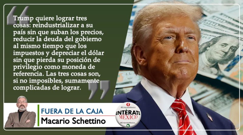 Trump quiere lograr tres cosas: reindustrializar a su país sin que suban los precios, reducir la deuda del gobierno al mismo tiempo que los impuestos y depreciar el dólar sin que pierda su posición de privilegio como moneda de referencia. Las tres cosas son, si no imposibles, sumamente complicadas de lograr.