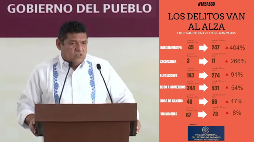 Difieren sobre cifras de inseguridad en Tabasco; el gobierno afirma que van a la baja los homicidios dolosos, pero oposición con cifras oficiales, demuestra lo contrario