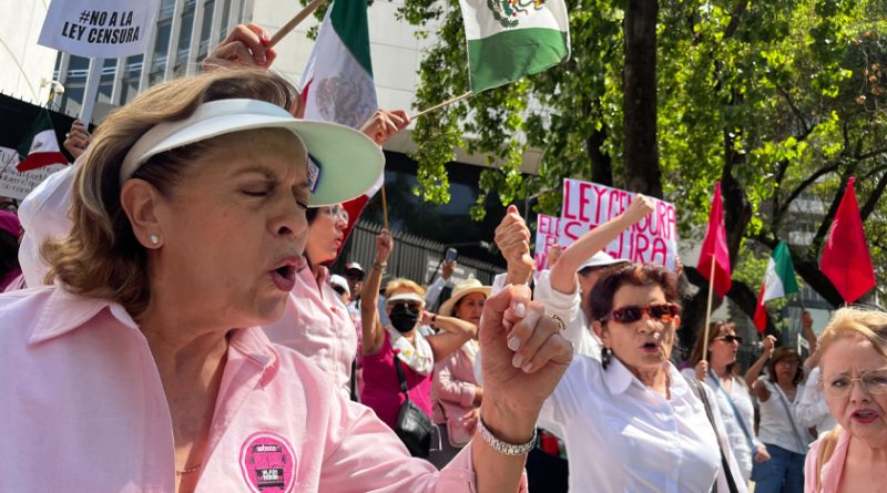 “¡México no quiere dictadura, México no quiere dictadura!”, expresaron los manifestantes, quienes también demandaron al Senado y la Cámara de Diputados que organicen un parlamento abierto sobre esta ley.