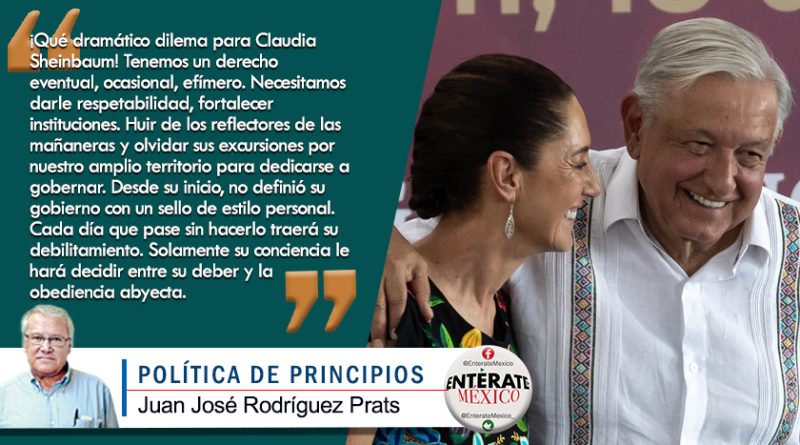¡Qué dramático dilema para Claudia Sheinbaum! Tenemos un derecho eventual, ocasional, efímero. Necesitamos darle respetabilidad, fortalecer instituciones. Huir de los reflectores de las mañaneras y olvidar sus excursiones por nuestro amplio territorio para dedicarse a gobernar. Desde su inicio, no definió su gobierno con un sello de estilo personal. Cada día que pase sin hacerlo traerá su debilitamiento. Solamente su conciencia le hará decidir entre su deber y la obediencia abyecta.