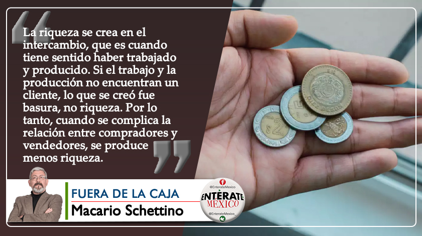 La riqueza se crea en el intercambio, que es cuando tiene sentido haber trabajado y producido. Si el trabajo y la producción no encuentran un cliente, lo que se creó fue basura, no riqueza. Por lo tanto, cuando se complica la relación entre compradores y vendedores, se produce menos riqueza. Eso fue lo que ocurrió a partir de 1913, cuando el comercio internacional empezó a reducirse, como proporción de la economía global. Ese empobrecimiento se aceleró con la elevación de aranceles en 1930, provocando no sólo una severa contracción en Estados Unidos (y por consecuencia en México), sino que agravó las dificultades económicas en Europa, favoreciendo la llegada al poder de los demagogos.