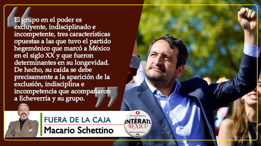 Como ya hemos comentado muchas veces, el grupo en el poder es excluyente, indisciplinado e incompetente, tres características opuestas a las que tuvo el partido hegemónico que marcó a México en el siglo XX y que fueron determinantes en su longevidad. De hecho, su caída se debe precisamente a la aparición de la exclusión, indisciplina e incompetencia que acompañaron a Echeverría y su grupo.