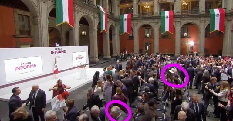 En la primera línea se encontraban, además de la familia de la mandataria, la secretaria de Gobernación; el gabinete de seguridad; el ministro Hugo Aguilar; la nueva presidenta del Senado, Laura Itzel Castillo; la presidenta de Banxico, Victoria Rodríguez Ceja; el fiscal Alejandro Gertz Manero y gobernadores.