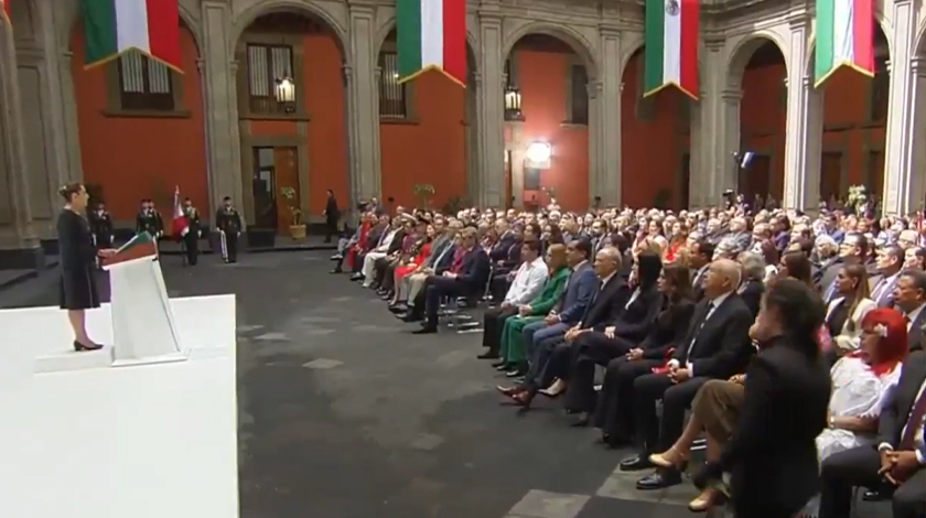En la primera línea se encontraban, además de la familia de la mandataria, la secretaria de Gobernación; el gabinete de seguridad; el ministro Hugo Aguilar; la nueva presidenta del Senado, Laura Itzel Castillo; la presidenta de Banxico, Victoria Rodríguez Ceja; el fiscal Alejandro Gertz Manero y gobernadores.