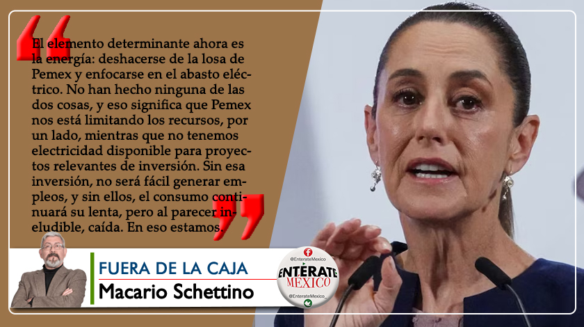 Ha iniciado el proceso de revisión del T-MEC, aunque la señora Sheinbaum parece ocupar todo su tiempo en otros temas. La seguridad, y las evidencias de corrupción de sus correligionarios, no le han dejado concentrarse en convertir en realidad su Plan México. Esta columna ha insistido, por mucho tiempo, que el elemento determinante ahora es la energía: deshacerse de la losa de Pemex y enfocarse en el abasto eléctrico. No han hecho ninguna de las dos cosas, y eso significa que Pemex nos está limitando los recursos, por un lado, mientras que no tenemos electricidad disponible para proyectos relevantes de inversión. Sin esa inversión, no será fácil generar empleos, y sin ellos, el consumo continuará su lenta, pero al parecer ineludible, caída. En eso estamos.