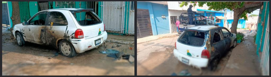 Sujetos armados a bordo de una motocicleta incendiaron un vehículo sobre la calle Julián Sánchez en la colonia Tierra Colorada.