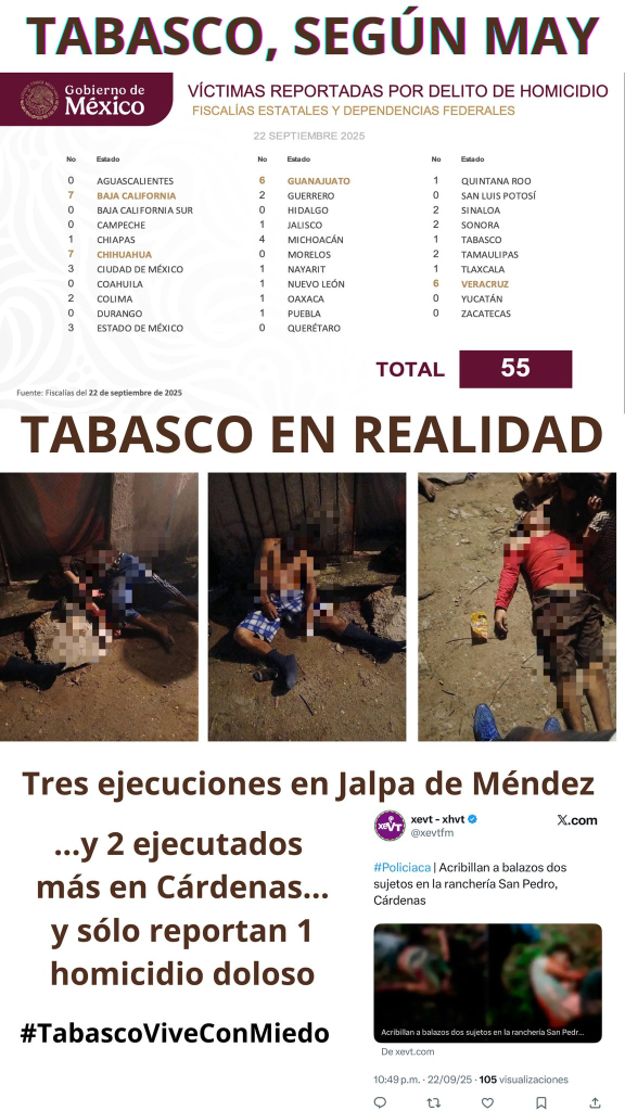 Precedido por una serie de ejecuciones en la ultimas dos semanas además que se recrudeció con la colocación de narcomensajes en distintos puntos de la capital tabasqueña, este día se vive una nueva jornada de violencia en distintos puntos de la ciudad con la quema comercios y la presencia de poncha llantas en carreteras.