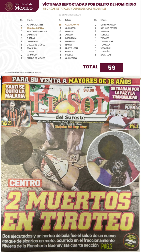 Por la mañana, sujetos armados llegaron hasta un domicilio de la calle Bugambilias de la Villa Pueblo Nuevo y atacaron a dos jóvenes en un presunto punto dedicado a la venta de sustancias prohibidas; su estado se reporta extremadamente grave y tampoco se ha emitido un comunicado al respecto a pesar de que Fuerzas Federales llegaron para acordonar el área.