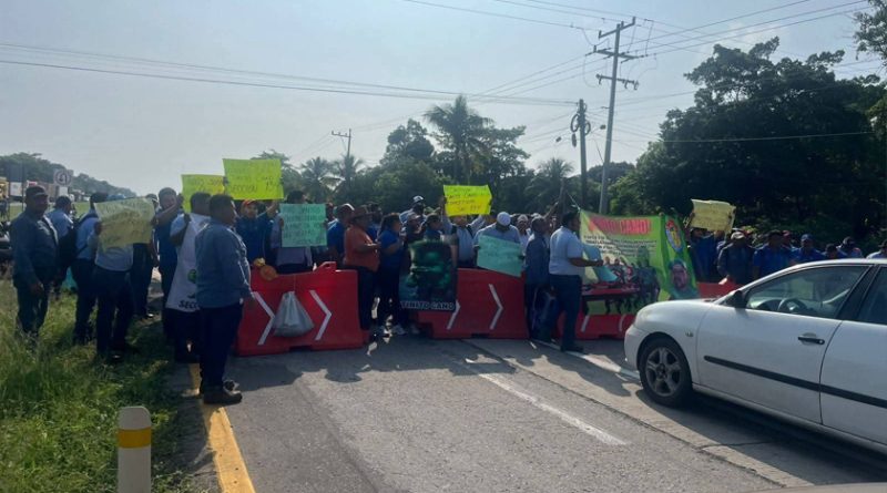 Este martes 30 de septiembre trabajadores del sindicato número 134 del Ingenio Presidente Benito Juárez, de Cárdenas, Tabasco, bloquearon la carretera Cárdenas-Coatzacoalcos a la altura de la zona conocida como “La Arrocera”, en protesta por la desaparición de cuatro de sus representantes sindicales.