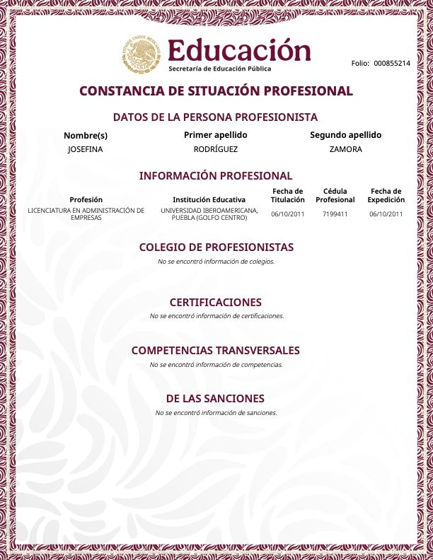 Sin embargo, en la Secretaría de Educación Pública (SEP), no existe registro alguno que valide la maestría ni el diplomado en su historial académico formal.