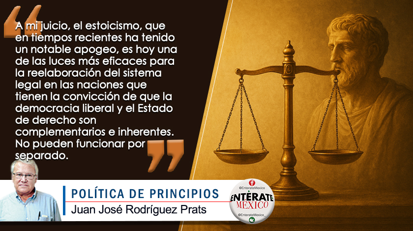 A mi juicio, el estoicismo, que en tiempos recientes ha tenido un notable apogeo, es hoy una de las luces más eficaces para la reelaboración del sistema legal en las naciones que tienen la convicción de que la democracia liberal y el Estado de derecho son complementarios e inherentes. No pueden funcionar por separado.