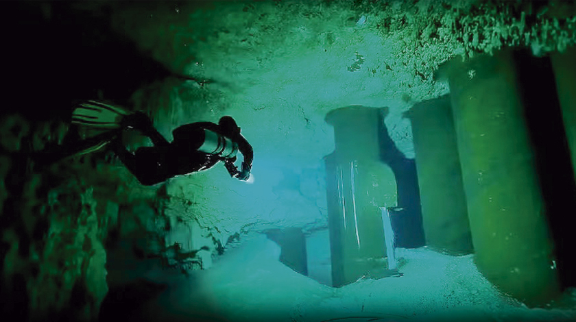 A través de una gruta, dos buzos patalean el agua y avanzan por las angosturas. Les iluminan las linternas, que arrojan las sombras de las estalactitas. Al torcer en uno de los recodos, se encuentran con una decena de pilares, cubiertos por una capa de metal oxidado. Uno está abierto, dejando ver un armazón de hierro, relleno de concreto derramado, como si el colado no hubiese fraguado bien. Al pasar el dedo por las estructuras, se deshacen como plastilina. Una capa de polvo de cemento cubre parte de la cueva. Arriba, encima de estos pilares, corre la parte elevada del tramo 5 del Tren Maya, un viaducto de 80 kilómetros sobre la Selva Maya. No es público cuántas de estas columnas hay atravesando el sistema de cuevas del acuífero de Quintana Roo, pero se calcula que superan las 15.000.
