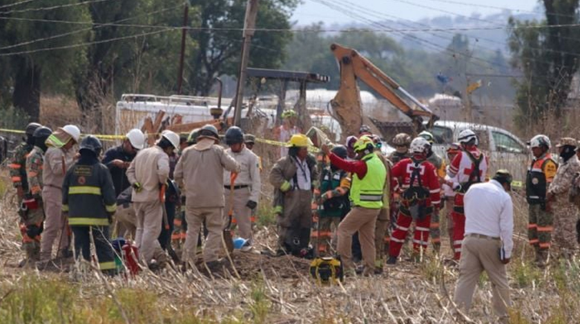 Pemex informa que las personas atrapadas son ajenas a la empresa y que el túnel que se derrumbó se encuentra relacionado con la extracción ilegal de combustible del ducto de hidrocarburo, comúnmente conocido como “huachicol”.