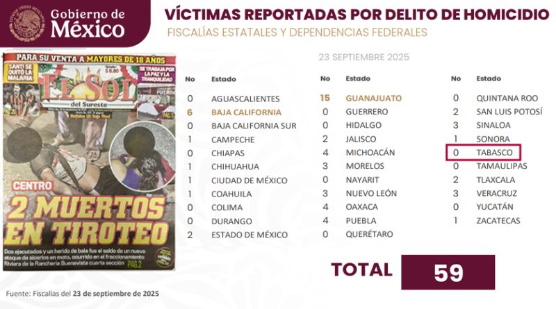 “El lunes 22 ocurrieron al menos cinco homicidios dolosos en el estado —algunas fuentes hablan de siete— y sin embargo en el reporte oficial del Consejo Nacional de Seguridad sólo se registró uno. El 6 de septiembre sucedió lo mismo: seis asesinatos, pero oficialmente sólo se acreditaron dos. Y ayer, 23 de septiembre, mientras la prensa reportaba dos ejecutados y un herido grave en Centro, la Fiscalía General del Estado informó saldo blanco”, denunció.