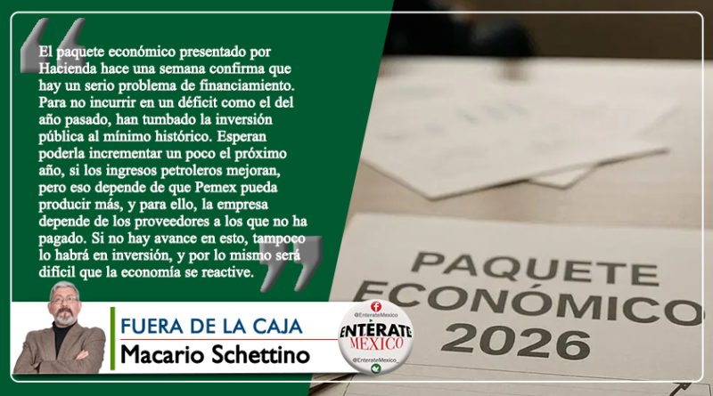 Leer másBote pateado Macario Schettino | @macariomx Hoy entregará Hacienda el paquete económico 2026 al Congreso. Aunque es posible que incluya